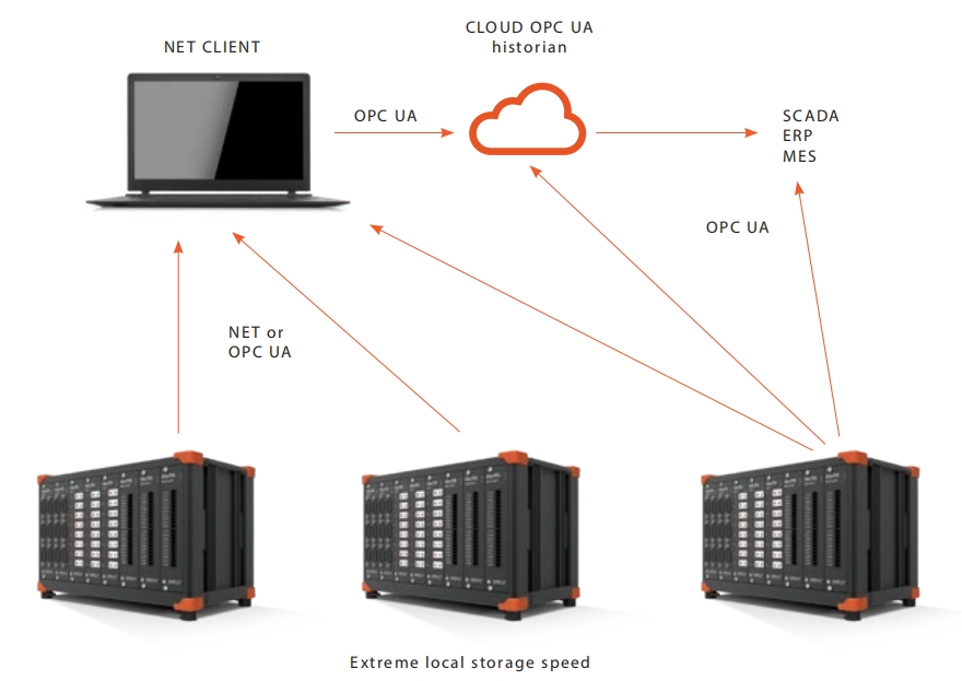 DEWESOFT 可以连接多种不同类型的信号源并同步记录所有数据, 用户可以同一界面以多种显示形式实时查看所有信号,并将它们记 录到单个数据文件中。 那是 DEWESOFT 独有的优势,没有其他任 何软件可以做到这一点。 高性能存储速率 >500MB/SEC,可连续流盘记录,支持触发采集、 分布式采集及云存储