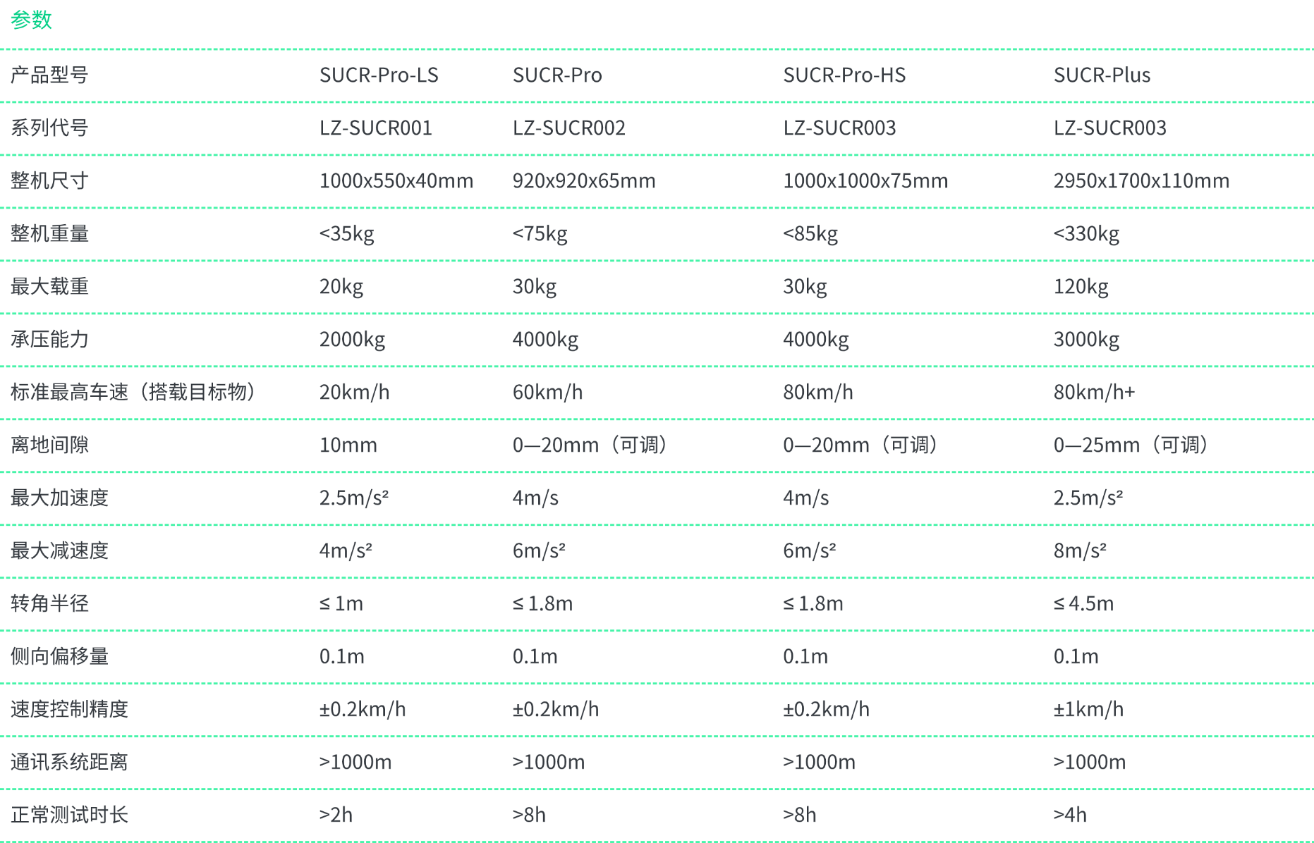 搭载目标物最大运行速度 60km/h,最大加速度达到 4m/s²;